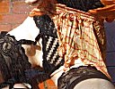 her silky orange blouse, which is soon sticking to every curve, and her